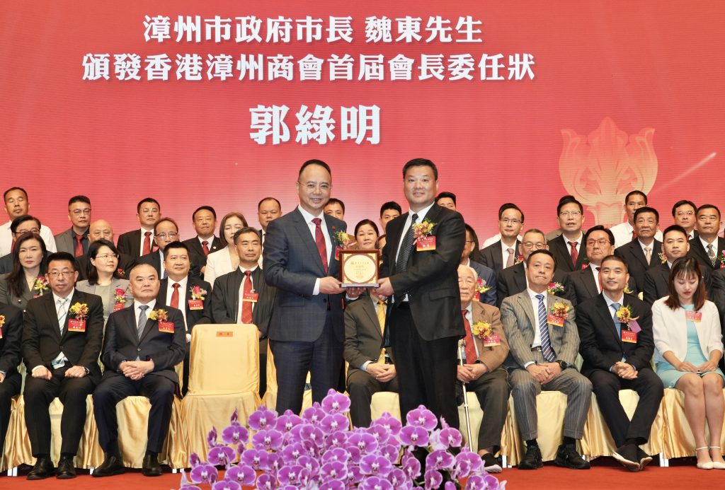 漳州市委副書記、市長魏東為香港漳州商會會長郭綠明頒發會長委任狀