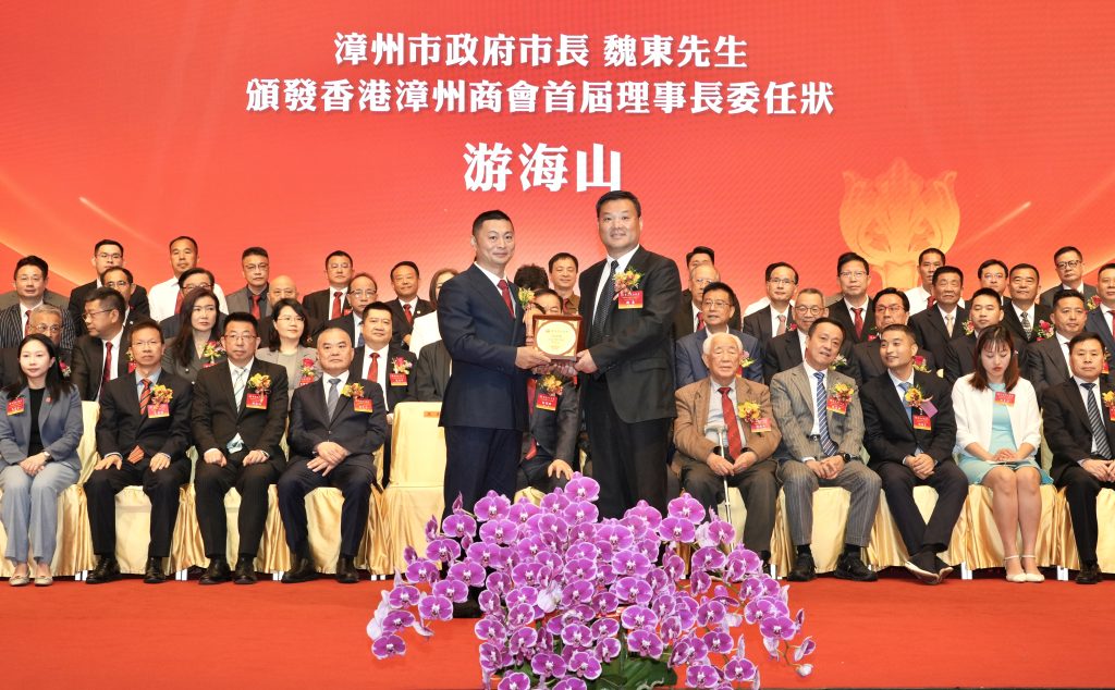 漳州市委副書記、市長魏東為香港漳州商會理事長游海山頒發委任狀