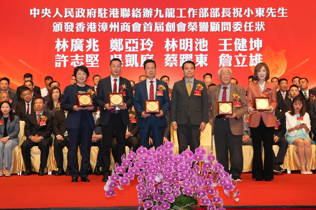 中聯辦九龍工作部部長祝小東為香港漳州商會監事長朱淮林頒發委任狀