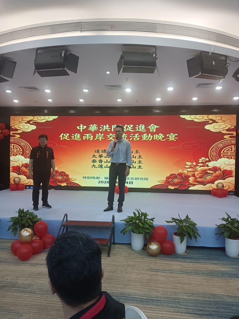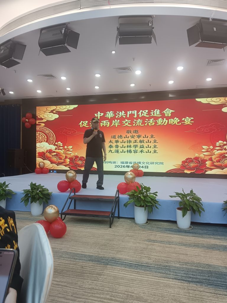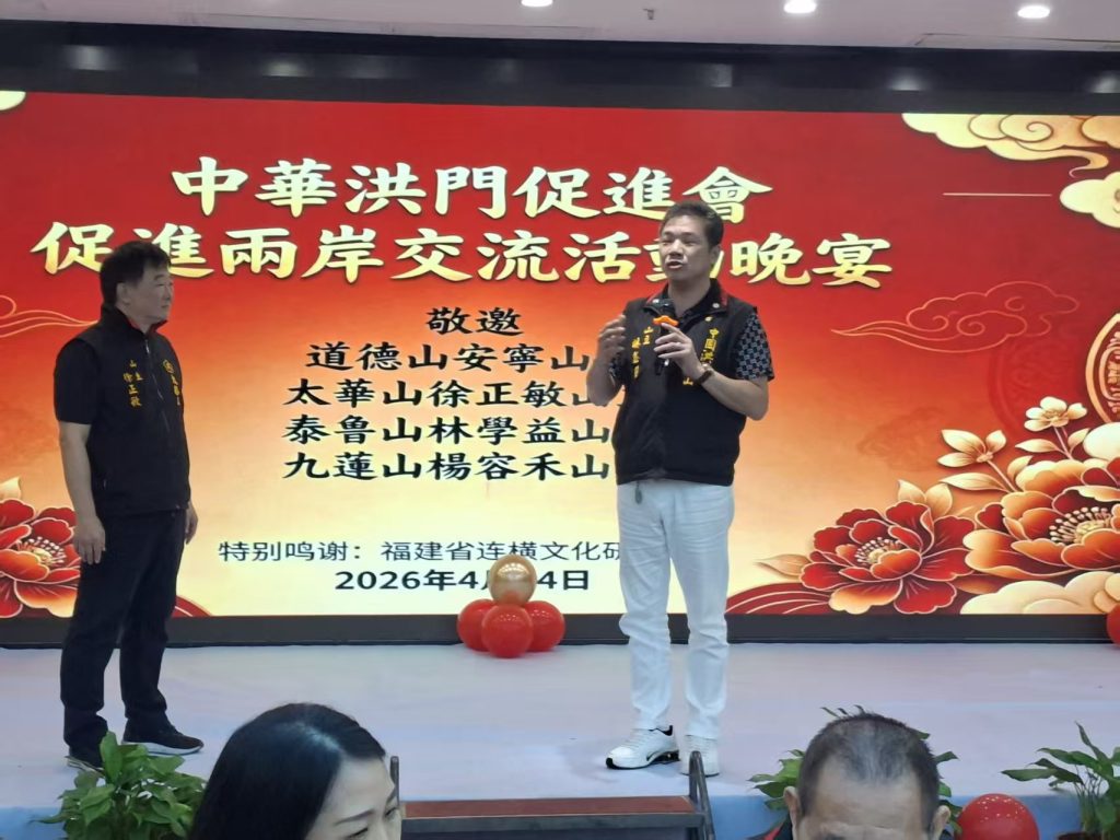 本次餐會的主要主辦人——楊容禾山主與徐正敏山主,先後登台,詳細介紹了與會貴賓,並對遠道而來的各山頭代表表示誠摯歡迎。楊容禾山主在致詞中提到:「今天的聚會,不是餐桌上的一杯酒、一頓飯那麼簡單。它是兩岸洪門兄弟時隔多年後,以『洪門』之名、以『忠義』之魂重新緊緊擁抱在一起。我們要讓對岸的兄弟知道,家門永遠敞開,血脈從未分離。」