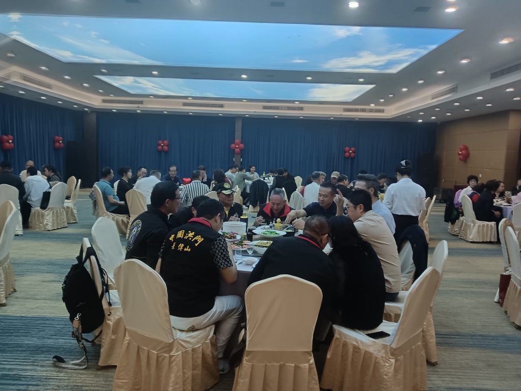 當日晚7点,藍灣大飯店宴會廳內張燈結彩,兩岸洪門旗幟並列高懸,與會昆仲身著正裝,胸前佩戴徽章,神情肅穆而熱切。來自台灣的「道德山」、「太華山」、「泰魯山」、「九蓮山」、「長傳山」等各山頭的山主及代表,與廈門致公黨相關人士、「聖禮山」等大陸洪門代表,以及專程從泰國趕來的洪門貴賓,共計90餘人齊聚一堂。